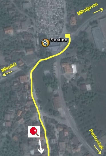 kvadratićem je označeno mjesto uz crkvu u Šestinama gdje će čekati auti u naznačena vremena. poslije samo ravno (vijugavo) po glavnoj cesti i škola je ubrzo s desne strane.